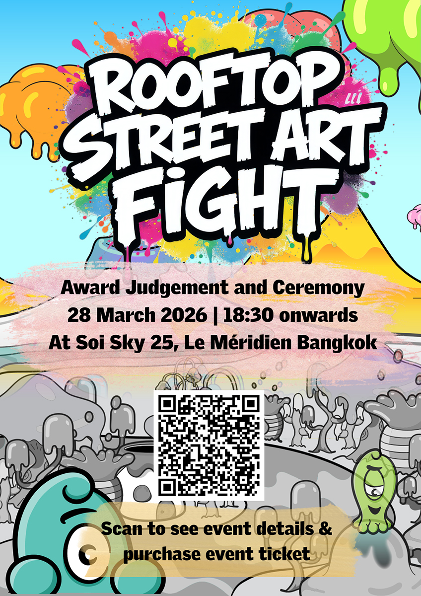 The award ceremony for Street Art Fight, Bangkok’s first rooftop street art competition, will take place on Saturday, 28 March 2026, at Le Méridien Bangkok, concluding a week of creativity, collaboration, and live urban art.