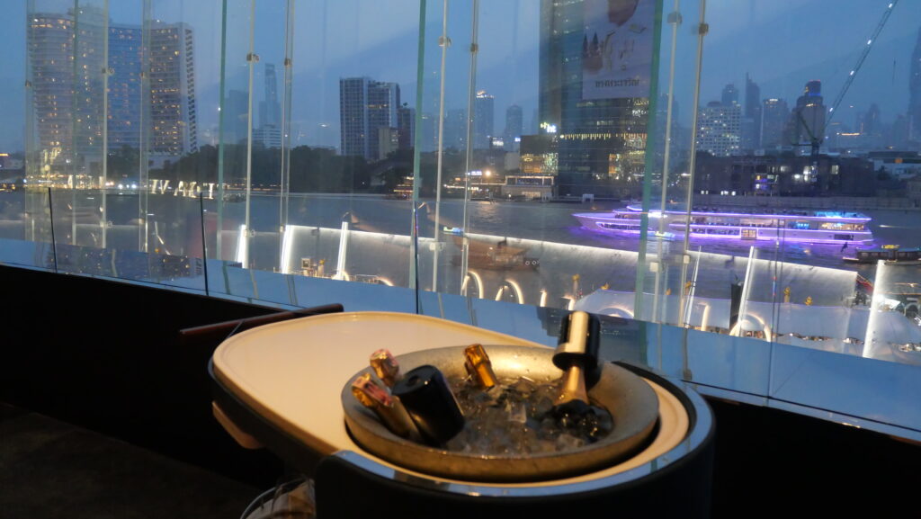The restaurant’s atmosphere is equally integral to the experience. Warm, soft lighting and modern interior design emphasize comfort and unobstructed views of the Chao Phraya River, creating a dining experience that engages all the senses—sight, sound, and taste.