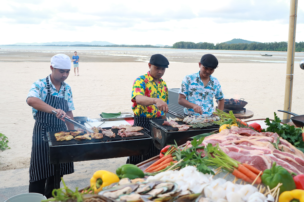Then, as the sun sets over the Andaman Sea, a Songkran Beach BBQ dinner (18:30 – 21:30 hrs, THB 1,695++ per person) will be staged on the Big Fish Patio, showcasing plenty of traditional Thai flavors and street food favorites, plus fresh seafood on ice, prime grilled meats, sweet treats and much more, all accompanied with live music, a classical Thai dance performance, and a muay Thai boxing show.