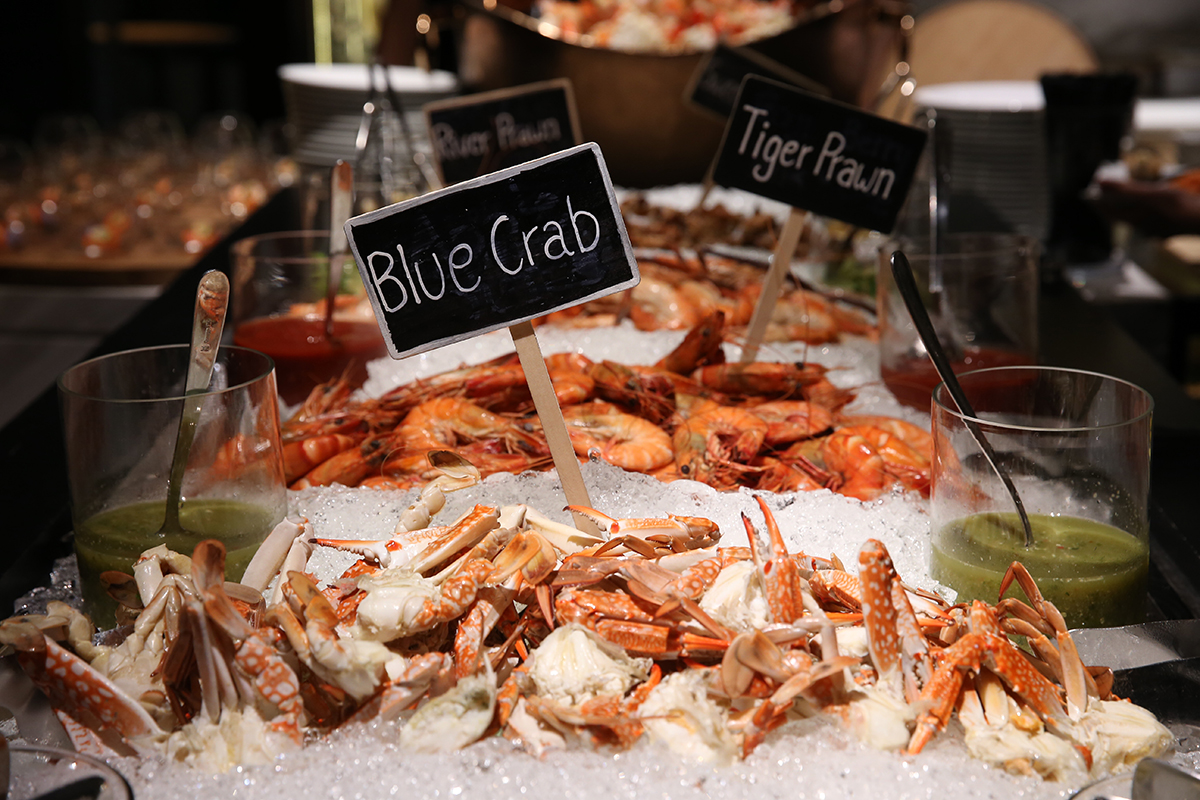 These seafood delights will be accompanied with a wide range of delicacies from around the world, including imported cold cuts and cheeses, an Oyster Bar, additional seafood on ice (scallops, black mussels, Babylonia whelks, banana prawns), sushi & sashimi, pan-seared Hokkaido scallops, grilled premium meats (dry-aged prime rib of beef, wagyu rump steak, Australian lamb rack), whole baked salt-crusted salmon, and Asian specialties such as homemade dim sum, tom yum seafood, braised beef noodles, and a dedicated Som Tum Station. And of course, every meal can end on a sweet note with a variety of international desserts (cakes, mousses and pastries), homemade ice creams & sorbets, mango sticky rice, and Thai sweets.