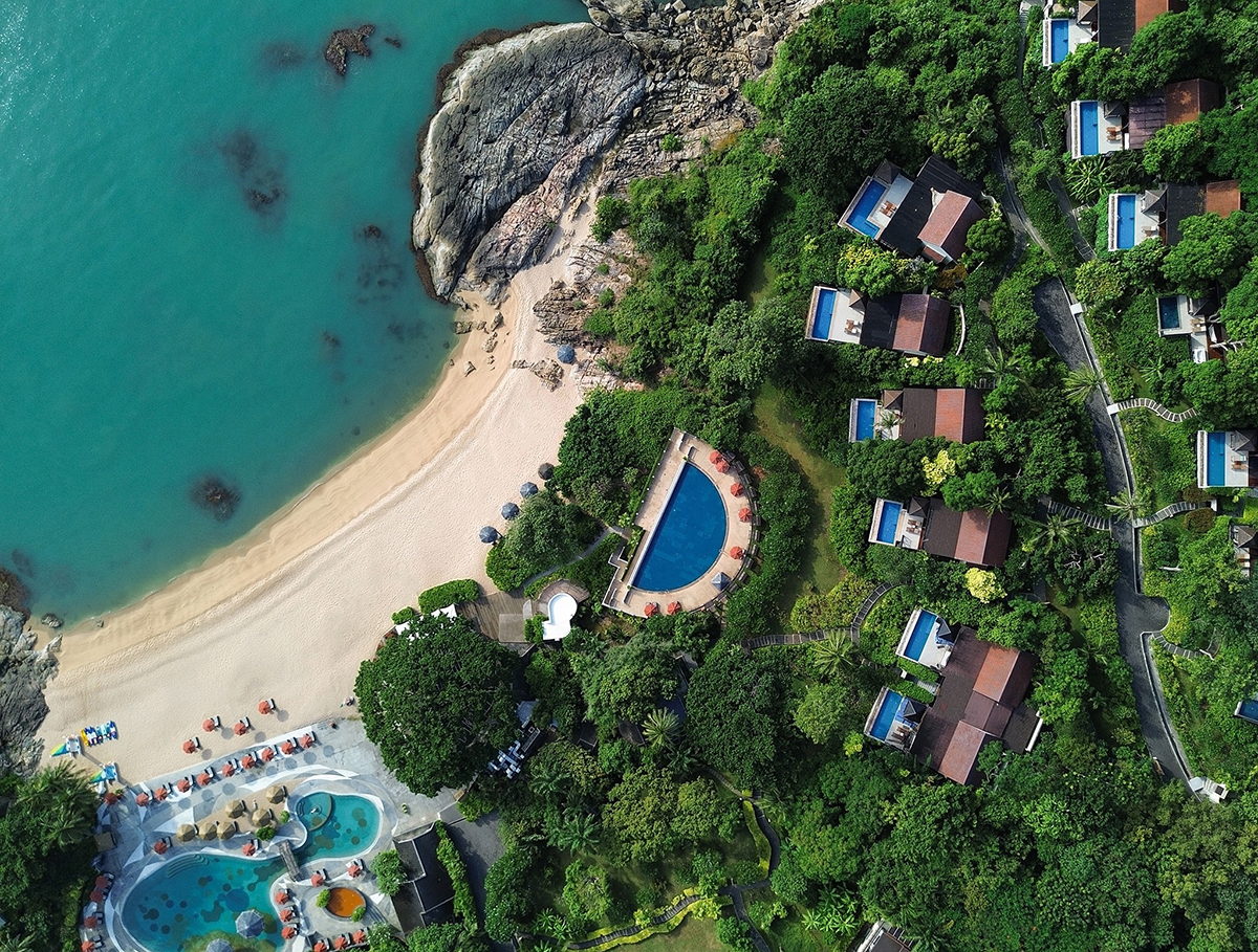 All 66 suites and villas are set within lush tropical gardens on a hillside overlooking a secluded bay, offering panoramic sea views and natural privacy. The resort features 47 suites and 19 pool villas, designed for comfort and tranquility, featuring a signature bathtub with a view. Each space is crafted to foster relaxation, reflection, and a deeper connection with nature.
