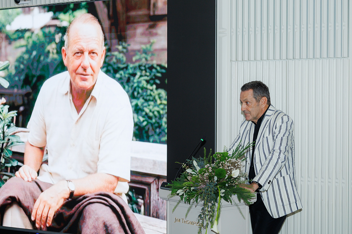 A key moment of the evening was the exclusive preview of Jim and I: The Weaver’s Stories, presented to guests ahead of its official launch. The community-driven storytelling project explores Jim Thompson through the voices of 12-individuals who have shaped its journey, offering a collective perspective on craft, creativity and continuity, and reflecting the idea of Jim Thompson as a legacy shaped by many hands over time. The event also introduced the first group of individuals, including Kittiphong Sansomboon, Niphon Manuthas, and Bill Bensley, whose personal stories contribute to the series.