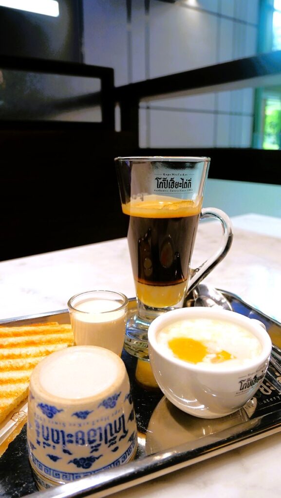 “Saduak Tan” Set: The café’s original set menu featuring a cup of hot coffee served with bread and soft-boiled eggs—a comforting, classic combination perfect for any time of day.