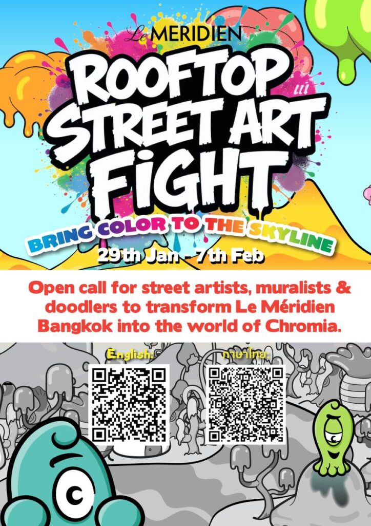 As part of Bangkok Design Week 2026, Le Méridien Bangkok invites street artists and creative collectives to take part in the city’s first-ever Rooftop Street Art Fight, a bold new art competition set against the city skyline.