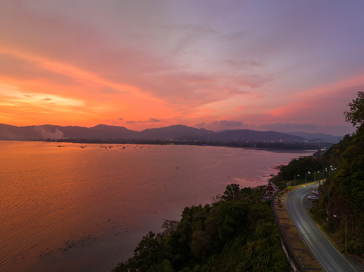 Rising quietly above Phuket’s east coast, Khao Khad Viewpoint offers a sweeping perspective of the island that feels both grounding and quietly romantic. From this elevated perch, the Andaman Sea stretches endlessly toward the horizon, dotted with distant islands and framed by lush greenery below. The atmosphere is serene and unforced best experienced in the early morning or as daylight softens, when the changing light brings a sense of calm reflection and timeless beauty.